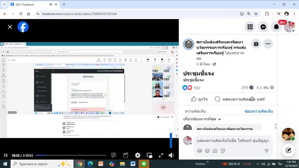 วันที่ 13 พฤศจิกายน 2568 เวลา 09.30 - 12.00 น นายวรพจน์ ไชยพรม ครู รักษาการในตำแหน่ง ผู้อำนวยการ สกร.ระดับอำเภอสบปราบ พร้อมด้วยครู และบุคลากรทางการศึกษา เข้าร่วมประชุมชี้แจงการสำรวจข้อมูลเกี่ยวกับงบประมาณเงินอุดหนุนรยหัวการจัดการศึกษาขั้นพื้นฐานของกรมส่งเสริมการเรียนรู้ เพื่อแจ้งรายละเอียดการสำรวจข้อมูลเกี่ยวกับงบประมาณเงินอุดหนุนรยหัวการจัดการศึกษาขั้นพื้นฐานของกรมส่งเสริมการเรียนรู้ ให้กับหน่วยงานในสังกัดกรมส่งเสริมการเรียนรู้ทุกแห่ง ได้มีความรู้ความเข้าใจถูกต้อง และปฎิบัติไปในทิศทางเดียวกัน ผ่านทางระบบออนไลน์ Microsoft Teams โดยมีนางยุพิน บัวคอม รองอธิบดีกรมส่งเสริมการเรียนรู้ เป็นประธาน ณ ห้องประชุม ศูนย์ส่งเสริมการเรียนรู้ระดับอำเภอสบปราบ ตำบลสบปราบ จังหวัดลำปาง