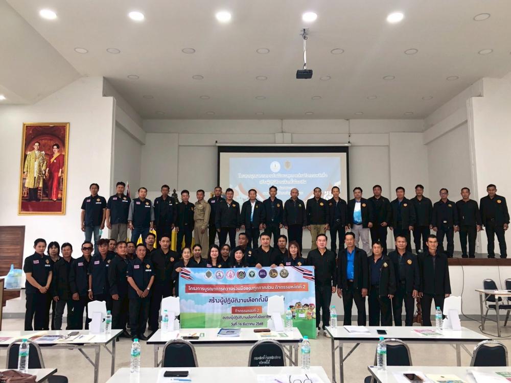 วันที่ 16 ธันวาคม 2568 เวลา 08.30 - 16.30 น. นายวรพจน์ ไชยพรม ครู รักษาการในตำแหน่ง ผู้อำนวยการ สกร.ระดับอำเภอสบปราบ พร้อมด้วยคณะครู ดำเนินการจัดกิจกรรมโครงการบูรณาการความร่วมมือของทุกภาคส่วน กิจกรรมหลักที่ 2 สร้างผู้ปฏิบัติงานเลือกตั้งมืออาชีพ ให้กับ ศส.ปชต.ตำบล 4 ตำบล เพื่อสร้างความรู้ ความเข้าใจที่จะปฏิบัติหน้าที่เป็นกรรมการประจำหน่วยเลือกตั้งท้องถิ่น และปฏิบัติหน้าที่ได้อย่างถูกต้องตามกฎหมายและระเบียบที่เกี่ยวข้อง. โดยมีนายวรพจน์ ไชยพรม ครู รักษาการในตำแหน่ง ผู้อำนวยการ สกร.ระดับอำเภอสบปราบ เป็นประธานในพิธีเปิด ณ หอประชุมที่ว่าการอำเภอสบปราบ จังหวัดลำปาง