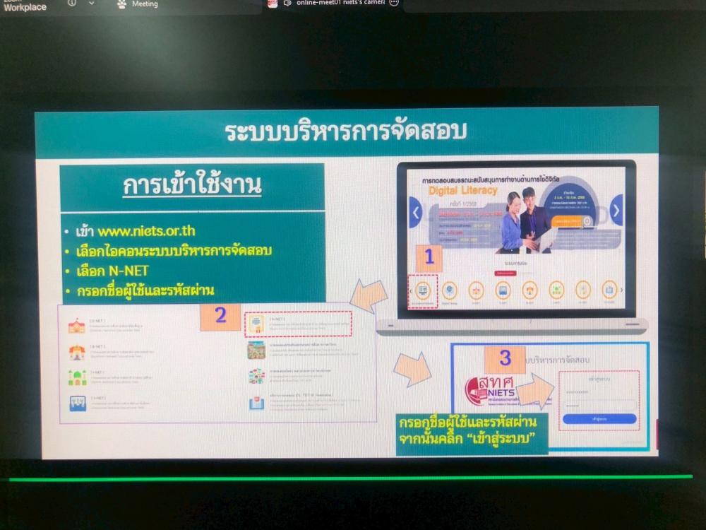 วันที่ 4 กุมภาพันธ์ 2569 นายวรพจน์ ไชยพรม ครู รักษาการในตำแหน่ง ผู้อำนวยการ สกร.ระดับอำเภอสบปราบ มอบหมายให้นายพงศกร ด้วงเขียว เจ้าหน้าที่เทคโนโลยีสารสนเทศ เข้าร่วมประชุมชี้แจงคณะกรรมการระดับสนามสอบ N-NET ครั้งที่ 2 ปีการศึกษา 2568 รูปแบบการสอบ Digital Testing เพื่อให้การดำเนินการสอบ N-NET เป็นไปด้วยความเรียบร้อย ตรงตรมมาตรฐานการทดสอบทางการศึกษาแห่งชาติ สร้างความรู้ความเข้าใจแก่คณะกรรมการระดับสนามสอบ ผ่านระบบ Zoom Cloud Meetings ณ ห้องประชุม สกร.ระดับอำเภอสบปราบ จังหวัดลำปาง